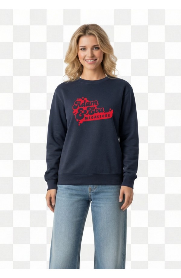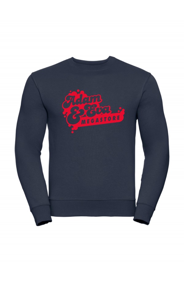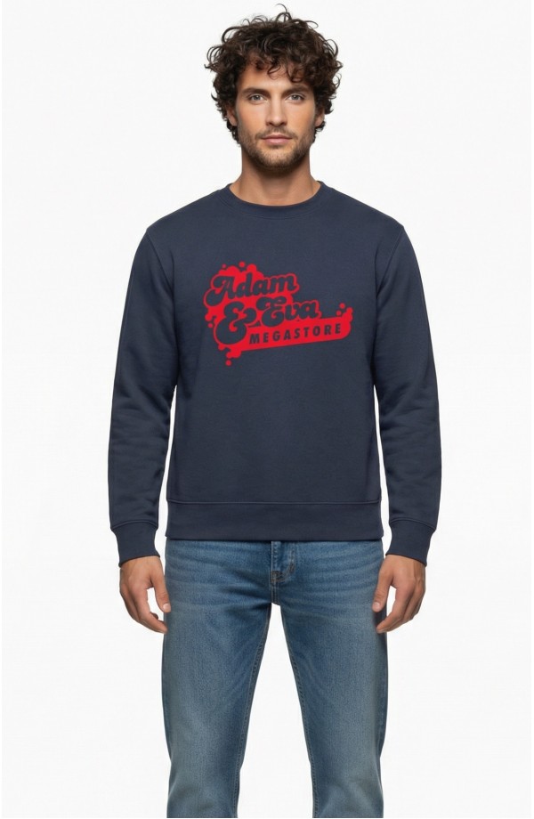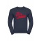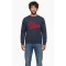 Dökkblá peysa með rauðu merki