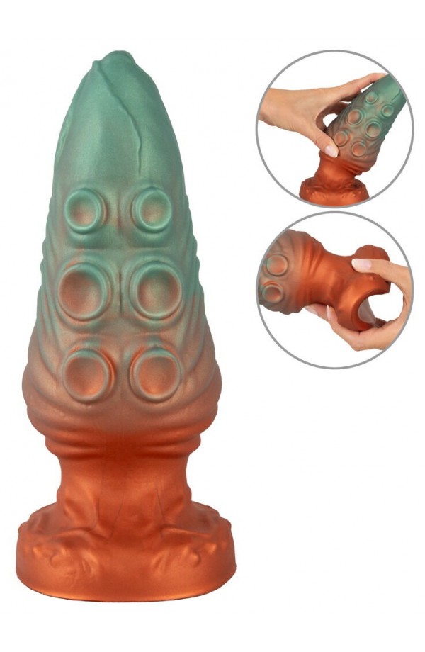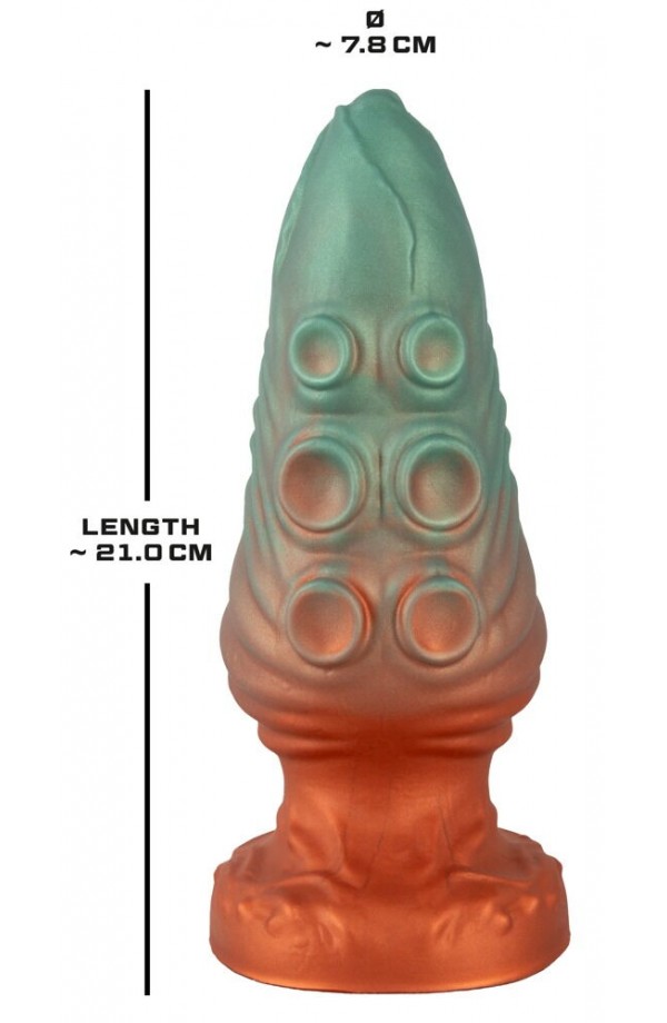 Large plug in a fantasy design With a strong suction cup Shimmering metallic look Very stimulating textures Gentle tip Bendy and flexible Velvety soft Liquid Silicone Extremely soft surface Conquer exciting & mysterious depths! The amazing Atlantis Anal plug from Beasty Cocks by You2Toys is an exciting mystical eye-catcher with its imaginative design in a metallic look. In addition to that, it is also a fulfilling deep diver for hot, thrilling adventures, thanks to its size and breathtaking stimulating textures! Furthermore, it can stick to any smooth surface with its large suction cup, which makes it perfect for hands-free play. It can also be used with strap-ons as well, thanks to its suction cup. The Atlantis Anal is made out of non-porous Liquid Silicone. It has a narrow tip for easy insertion. It is also pleasantly sturdy but also wonderfully flexible as well. It adapts perfectly to the body and its movements. It also glides over the skin and into the intimate depths, thanks to its extremely soft surface. The plug comes in elaborate, reversible packaging: 1 x front with a picture of the product, 1 x front with a picture of the creature. Total length 21 cm, insertion length 17 cm, Ø 4.6 cm–7.8 cm. Weight 695 g. Silicone (Liquid Silicone).