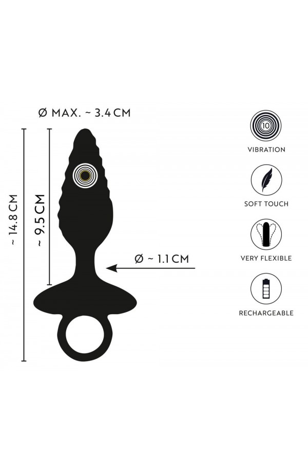 The Flexible Butt Plug Twisted Design with Vibrations from ANOS combines intense anal stimulation with comfort and safety. Not only is its spiral design a real eye-catcher, but it also provides thrilling stimulation too. Each insertion and removal creates incomparable stimulation. The wide stopper with the practical ring-shaped handle ensures safe play without it sliding in too far. This butt plug is therefore perfect for solo and couple's fun.