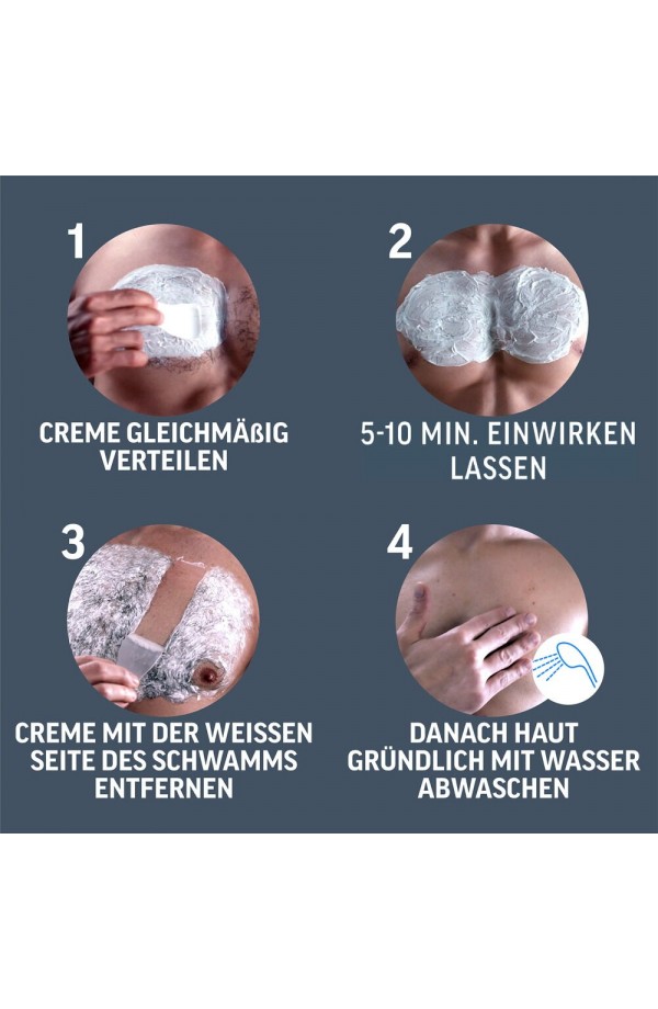 Hair removal cream for normal skin Especially for his upper body & legs Quick and complete hair removal Easy & safe to use Long-lasting results Provides up to 24 hours of moisture Smooth & well-groomed in minutes! The Veet Men TOTAL PRO Hair Removal Cream enables quick and effective removal of unwanted hair on the upper body and legs. The dermatologically tested formula leaves skin feeling noticeably smoother and provides up to 24 hours of nourishing moisture. The cream removes hair in just 5 to 10 minutes and it provides long-lasting results with less itchy stubble and fewer ingrown hairs compared to shaving. Furthermore, no unpleasant odour remains on the skin after use. Read and follow all the important advice before use. Follow the instructions. Do not leave on for longer than 10 minutes in total. Not suitable for use on the head, face, eyes, nose, ears, anal or genital areas, or nipples. 400 ml in a practical pump dispenser. Read less Ingredients Aqua, Cetearyl Alcohol, Paraffinum Liquidum, Potassium Thioglycolate, Calcium Hydroxide, Ceteareth-20, Talc, Glycerin, Parfum, Polyethylene, Sodium Gluconate, Panax Ginseng Root Extract