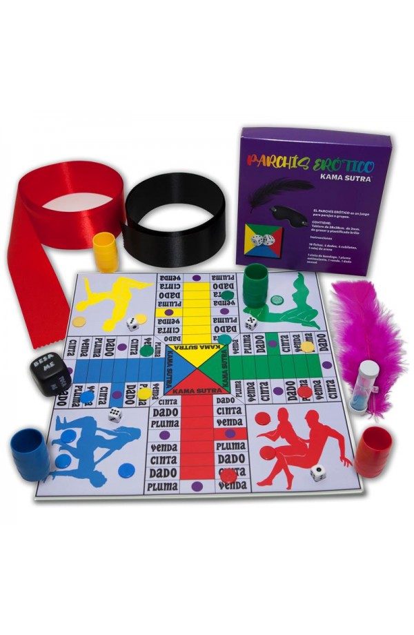 Erotic Parcheesi is played in the same way as classic Parcheesi, but with a particularity, the player who ?eats? another player can choose between counting 20 or counting 10 and using the object they carry for the duration of the hourglass (when they eat you in the bondage tape you will have to wear it).
