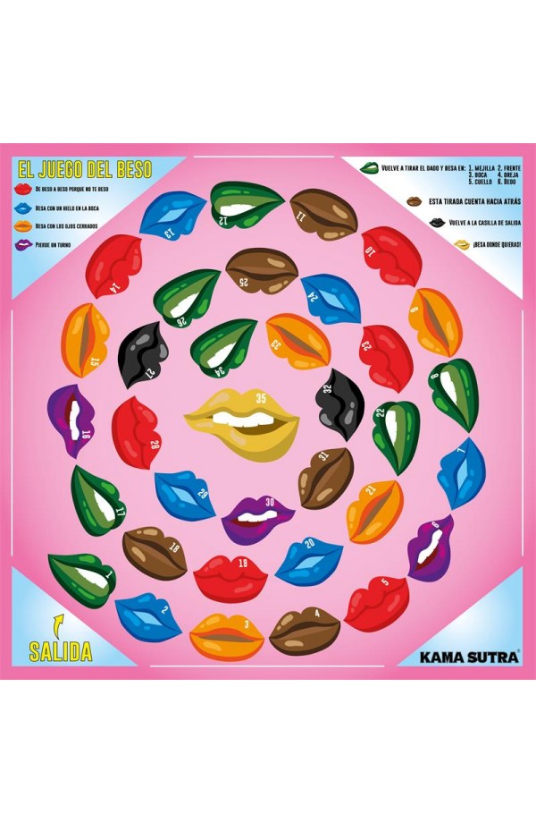 Fun game to enjoy as a couple or with friends. The game "Of the erotic kiss" is a game to enjoy the preliminaries with all kinds of kisses and in different places. Finishing the winning player giving a kiss where he wants and as long as he wants and being able to use all the objects that he takes.