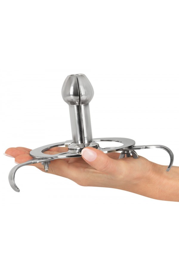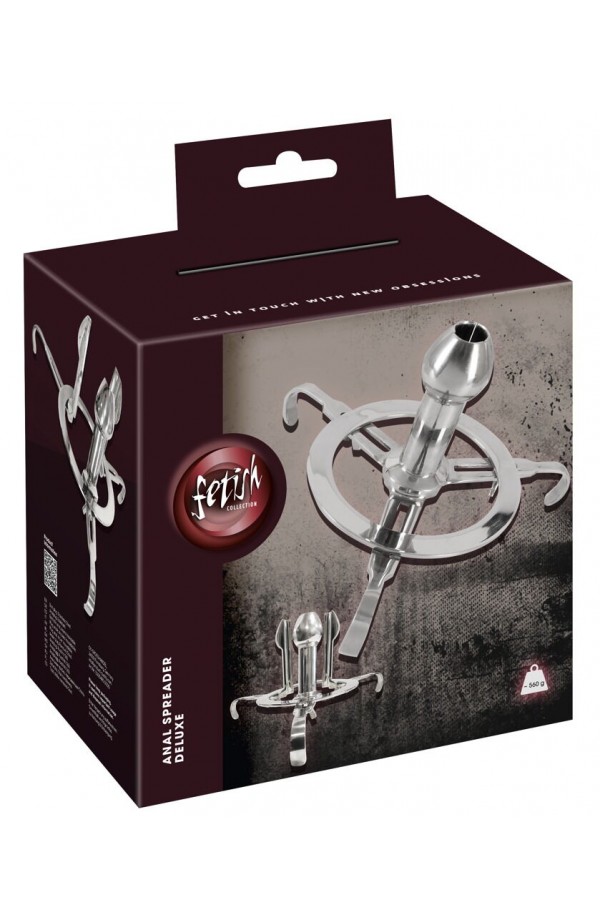 Hollow butt plug/spreader Made out of smooth, polished stainless steel Diameter adjustable with the screws Anal-safe base ring For stimulation, stretching & anal views Temperature play possible Hygienic – easy to clean The upgrade for anal fun! The Anal Spreader Deluxe from fetish collection perfectly combines intense stimulation, effective stretching, spectacular views and an incomparable feeling of openness. The three screws can be used to adjust the hollow plug's diameter – just like with an anal speculum. A large ring at the base ensures anal-safe use and stops it from sliding in too far. The round opening is also great for various insertion games with toys or enemas. The Anal Spreader Deluxe is made out of high-quality stainless steel, which is smooth and polished. It is hypoallergenic and very hygienic because it is easy to clean. This makes the Anal Spreader Deluxe perfect for temperature play: simply put it in the fridge to cool it down or in warm water to warm it up. Total length 12.5 cm, insertion length 8.3 cm, Ø 4 cm–8.3 cm, ring Ø (inner) 10 cm. Weight 560 g. Metal/stainless steel.