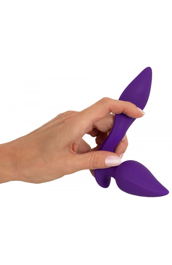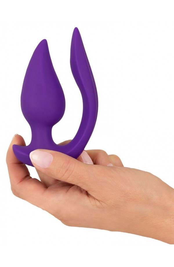 The vibrating plug is easy to insert, either vaginally or anally, because it is made out of silky soft silicone and has a narrow tip. The flexible lay-on part nestles perfectly against the vulva and clitoris or snugly against the perineum. The Plug & Panty Vibe adapts flexibly to the body and its movements – and is completely safe for anal use. Maximum comfort with sophisticated dual stimulation!
