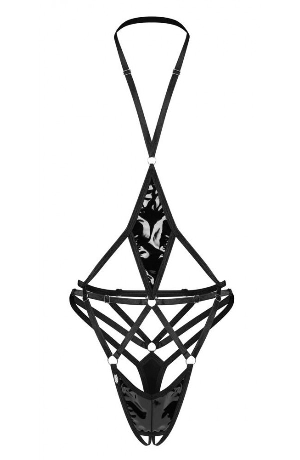 Open cup string body Harness look with vinyl inserts Backless and reveals the buttocks Soft, stretchy straps Decorative silver-coloured rings Adjustable halterneck & waist strap Seductively crotchless Straps, vinyl and passion! The black, open cup, string body Keira Lise from Obsessive is in an exciting harness look. It has soft stretchy straps, and rings and shiny vinyl inserts at the front. It is also backless. The halterneck can be adjusted to fit. The adjustable waist straps can also be adjusted to fit and has a clip fastener at the back as well. It is seductively crotchless too. 100% polyurethane, 95% polyester, 5% spandex. Important – There is a separate size chart for Obsessive.