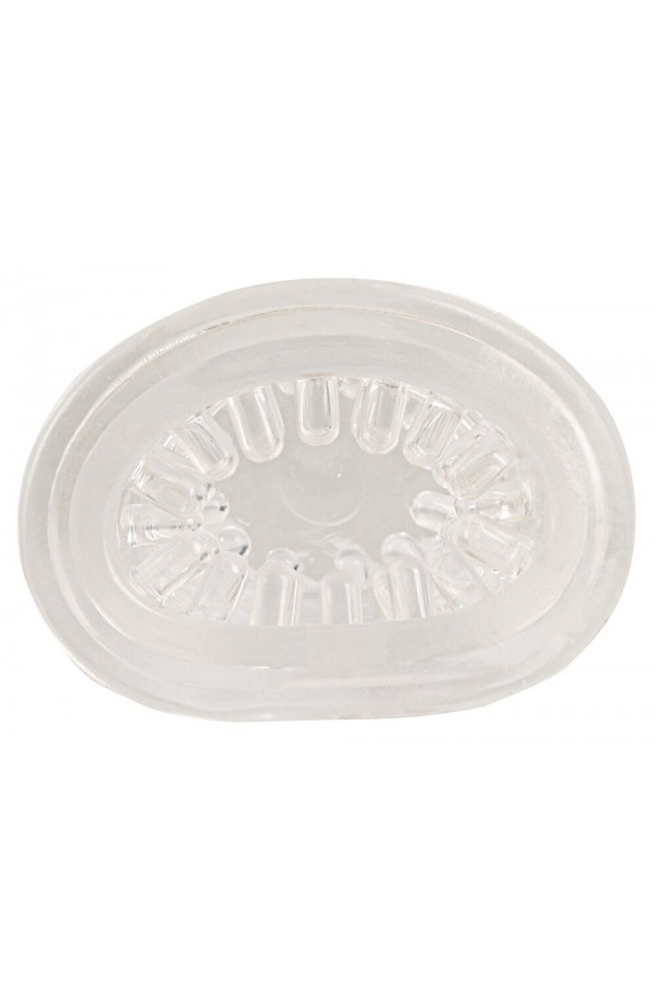 The soft, stretchy sleeve is in a neutral design and has soft textures inside that additionally massage the penis. The sleeve can be easily removed for cleaning.
