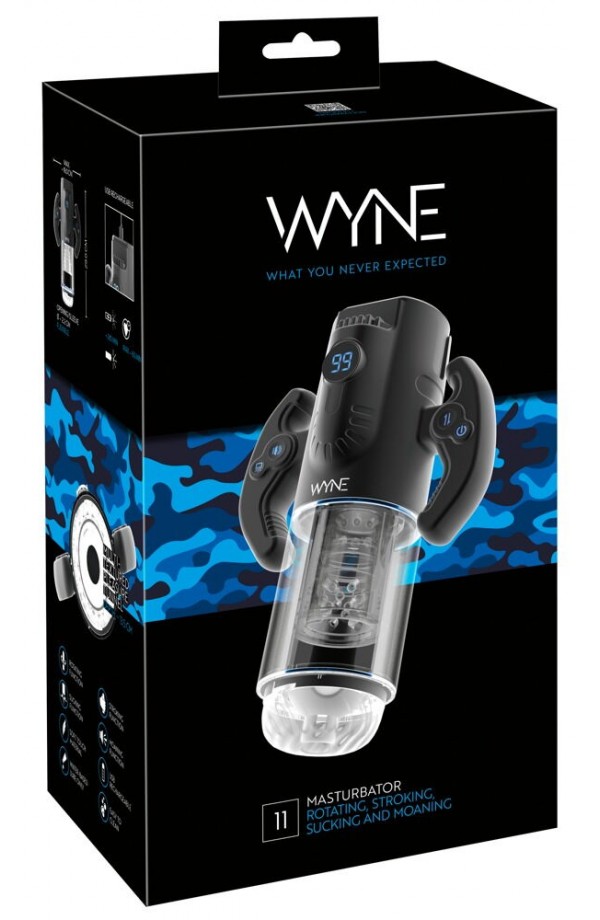 The powerful Masturbator 11 from WYNE has a double motor and can massage the entire penis with its exciting rotating inner sleeve that also moves up and down as well. It has a powerful suction function too – so that it feels just like it does during an amazing blowjob. Sexy breathy moans can be heard via the integrated speaker or the included headphones – perfect for providing a sexy atmosphere. Fully-automatic penis fun with all the bells and whistles!