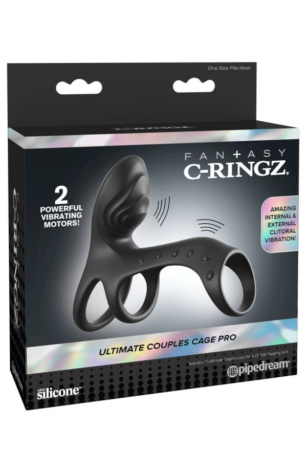 The Ultimate Couples Cage Pro von Fantasy C-Ringz pleasures both partners with intense vibrations during sex. The grooved penis sleeve not only stimulates the clitoris with its powerful vibrations, but it also pleasantly vibrates on the glans too. The two stretchy cock rings grip the penis firmly and also support the erection as well, so that the fun will last a really long time. In addition to that, the ball ring provides a pleasant pull and ensures a secure, non-slip fit of the sleeve even during the wildest lovemaking. This means that both partners can experience new climaxes and varied moments of pleasure together.