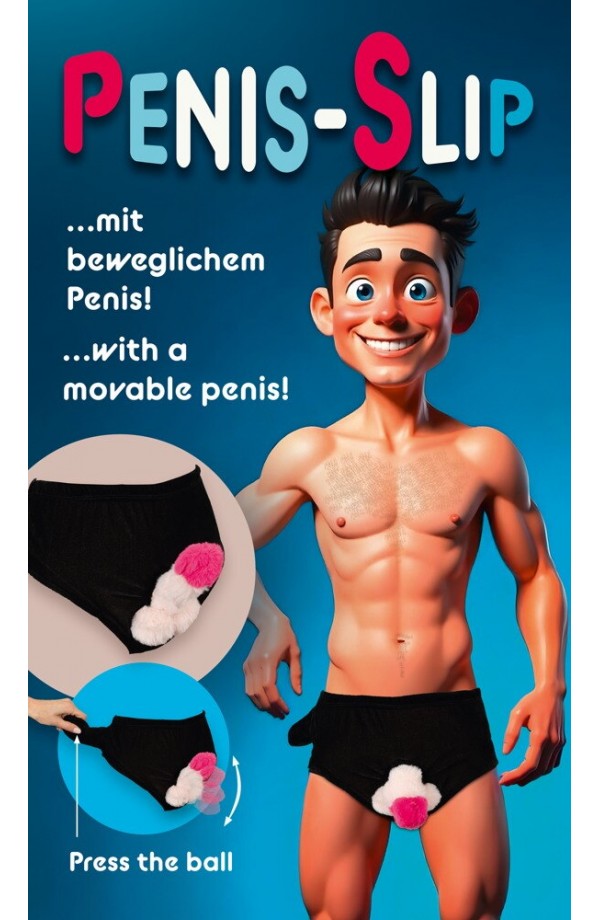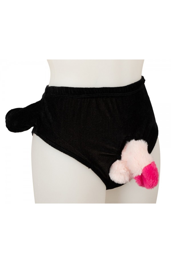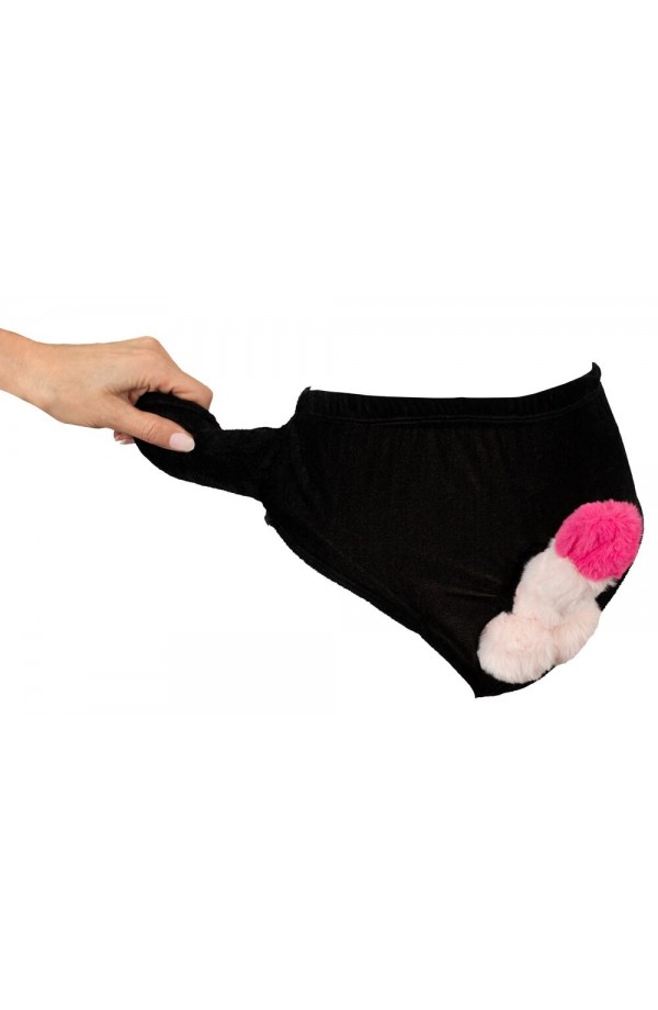 Briefs with a movable plush penis (pneumatic) "Secret" pump ball for making the penis stiff Cheeky fun gift for a partner, great for parties and hen/stag parties Unisex/One size Plush penis with power! The black penis briefs have an eye-catching plush penis that can be made stiff in the blink of an eye (pneumatic) – the "secret" pump ball just needs to be squeezed! One size. The briefs are a cheeky eye-catcher and great as a joke present for a partner, for carnival/Mardi Gras, parties, hen/stag parties, etc. Hand wash only. Unisex/One size. 100% polyester