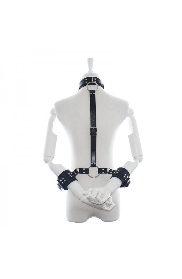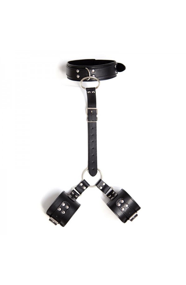 Enjoy being the boss or the submissive with these restrictions. They have an adjustable collar with buckle, attached with a strap, also adjustable with a buckle, to handcuffs for the wrists attached to each other. It is perfect so that your submissive cannot move their hands and you have the power.
