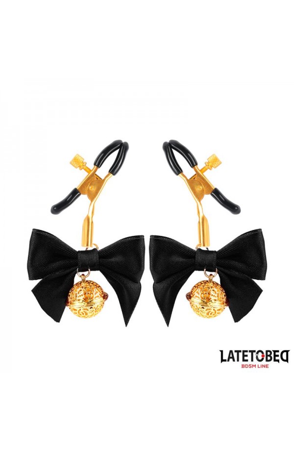 Pleasure and romance go hand in hand with these nipple clamps. They feature incredibly beautiful details, including a black bow and a gold bell. But the best part is the details, as they feature some very special decorated bells.