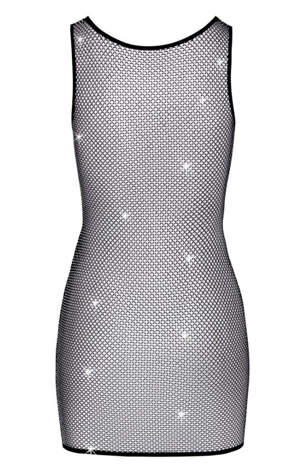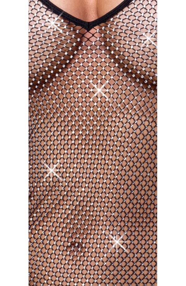 Tapered mini dress with straps Extravagant mesh Covered in rhinestones With elegant piping in the cleavage area and on the hem Soft for a very comfortable fit A sparkly eye-catcher! The tapered mini dress with straps from Cottelli PARTY is made out of extravagant mesh that is covered in rhinestones. The cleavage area and hem is decorated with black piping. It is soft and stretchy for a very comfortable fit. 100% polyester.