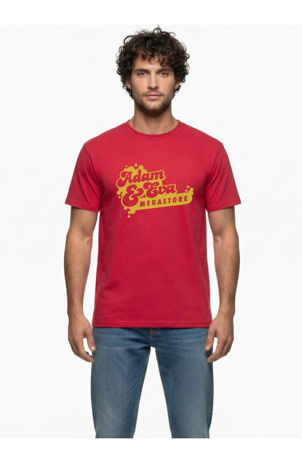 Rauður bolur með gylltu merki