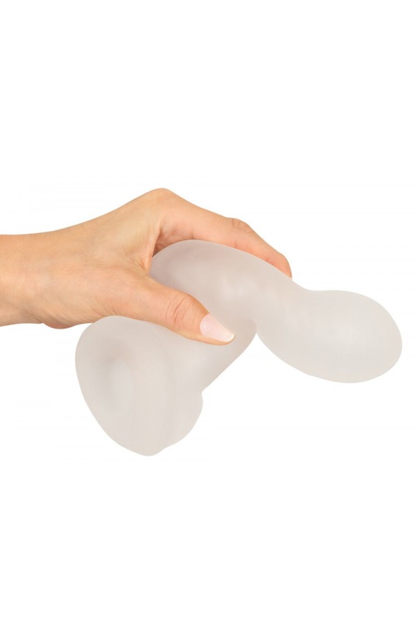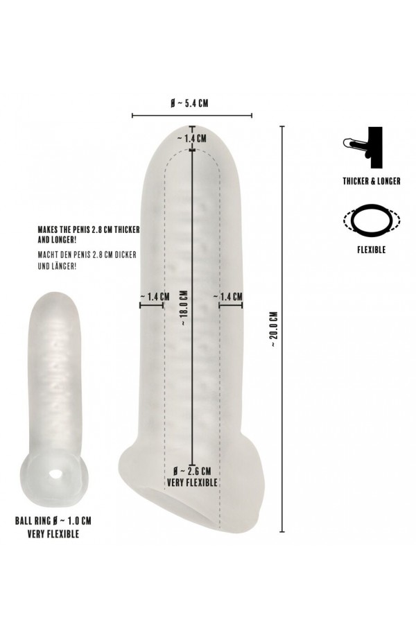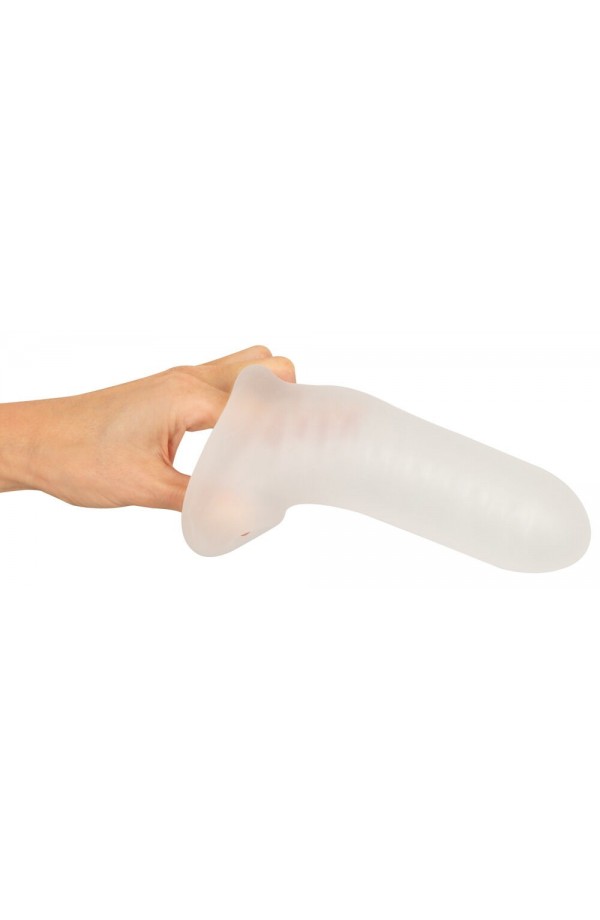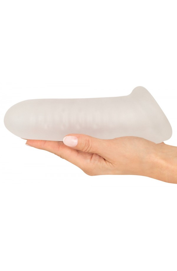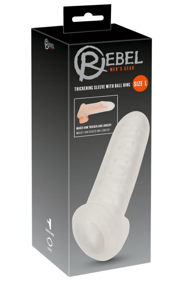 The closed Thickening Sleeve with Ball Ring Size L from REBEL increases the size of the penis quickly – for extremely fulfilling moments of pleasure. The stretchy and transparent penis sleeve can be slid onto the penis. It then makes the penis approx. 1.3 cm thicker and longer! The stimulating grooves inside provide additional friction and stop it from slipping off as well. The flexible ball ring pulls pleasantly and helps the sleeve stay in place – even during the wildest of rides!