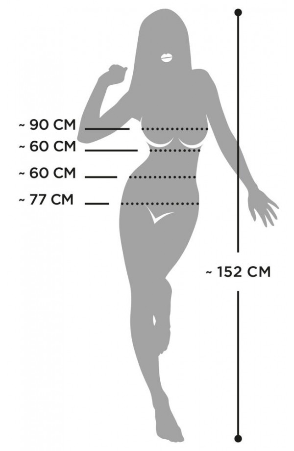 Measurements (circumference): chest 90 cm, waist 60 cm, hips 77 cm.