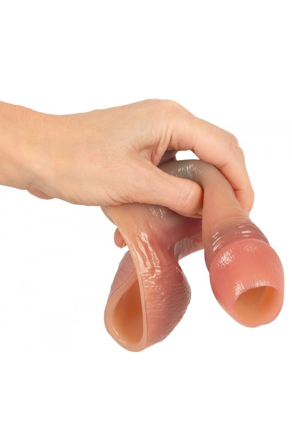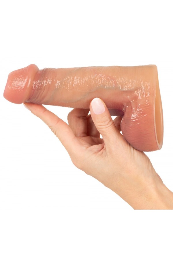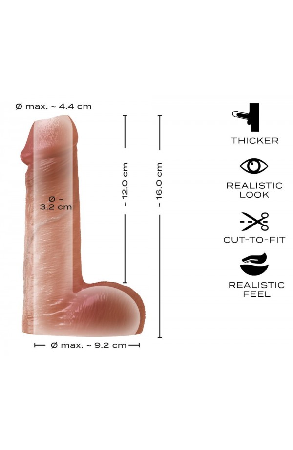 Combined cock/ball sleeve Thickens the penis Glans and balls area is open More intense pleasure Supports the erection Realistic look with veins Velvety soft silicone Can be cut to fit More feeling & more power during intense moments! The RealSleeve Intense from Realistixxx provides intense pleasure and supports the erection effectively. The combined cock/ball sleeve can be put on the shaft and securely fitted around the balls. The open glans and balls area makes maximum stimulation possible, while the sleeve makes the penis look and feel thicker. More feeling. More volume. More pleasure. The cock/ball sleeve is made out of velvety soft silicone and has authentic veins on its surface – making it look and feel realistic and lifelike. It is completely soft and stretchy, which means that it is easy to put on and fits snugly around the balls as well. The length of the sleeve can be cut with scissors for a perfect fit. An amazing combination of function, comfort and realistic design. Total length 16 cm; penis sleeve 12 cm long, outer Ø 4.4 cm, inner Ø 3.2 cm (flexible). Ø of ball hole max. 9.2 cm (flexible). Material thickness 0.6 cm (thicker). Weight 153 g. Silicone.