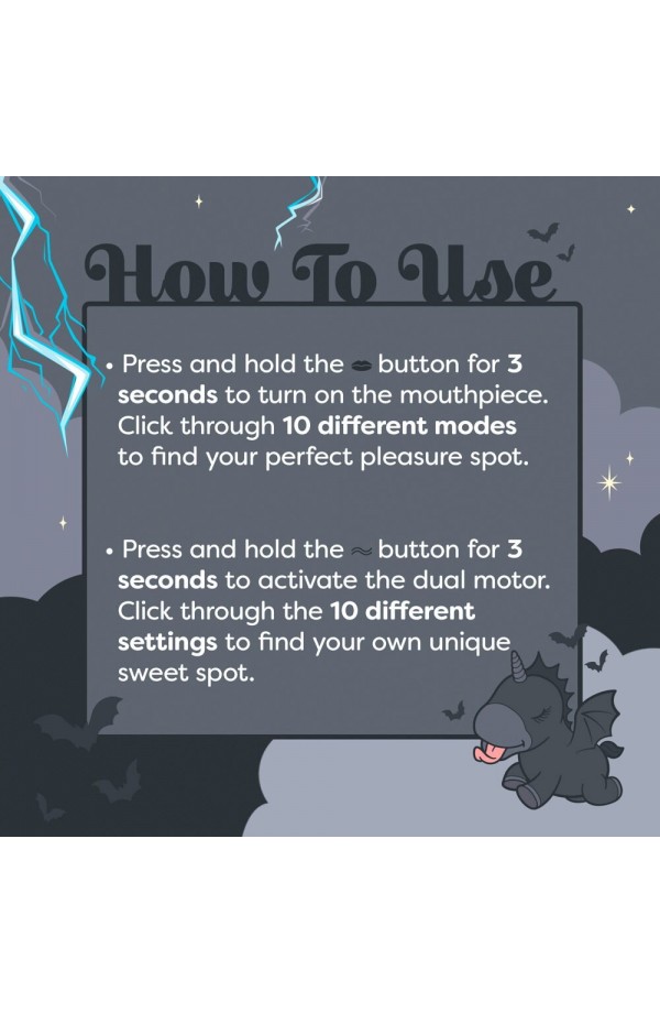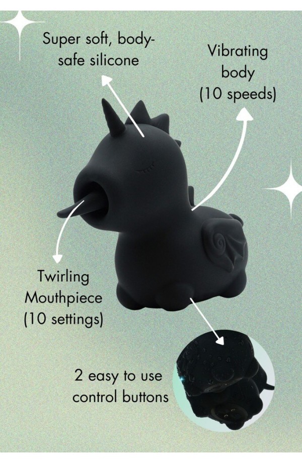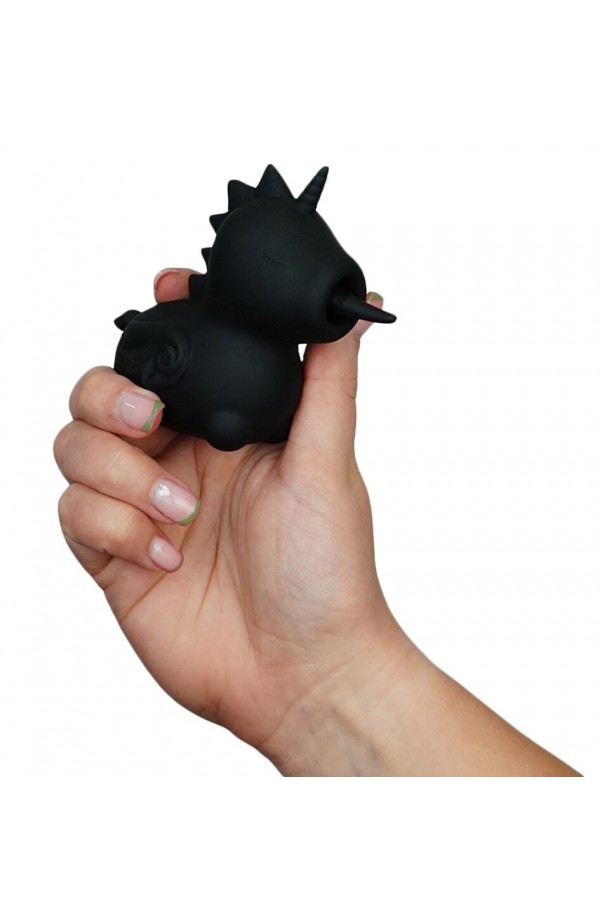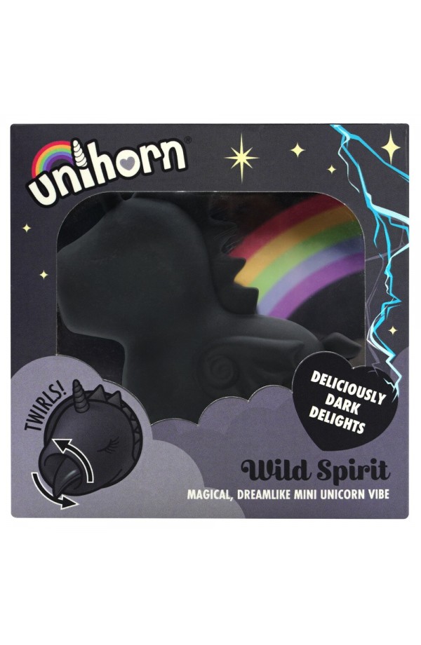 Cute lay-on vibrator Wild Spirit from Unihorn in the shape of a little unicorn. The soft, non-slip silicone toy provides intense pleasure with its vibrations and a long, soft swirling tongue in the open mouth. The deluxe dual motor provides reliable power. The 10 different vibration and tongue movement modes can be controlled separately at the touch of a button. A magical toy for versatile play – alone or as a couple – at home or on the go!