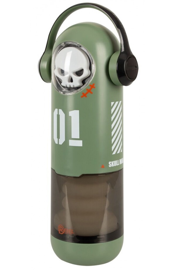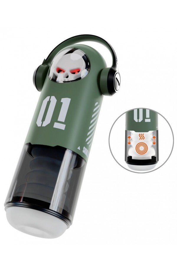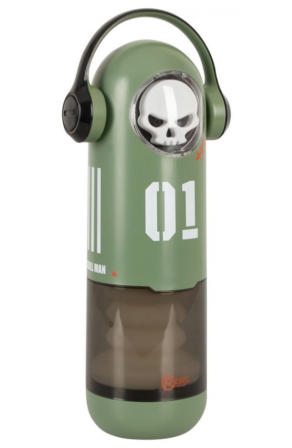 Masturbator with 3 functions Stylish skull look Fully-automatic pleasure Easy to use – cool headphone-shaped buttons Eyes glow red Warming function up to 42°C Vibrations in 10 modes Thrusting massage in 5 modes Functions can be controlled separately Soft sleeve with dots & grooves High-quality materials Rechargeable – incl. to USB-C cable Intense action, a cool design and easy fun! The easy-to-hold SKULL Masturbator with 3 Functions from Rebel in a stylish skull look. It will pleasure the entire penis with penetrating vibrations and a powerful thrusting massage. The warming function quickly gets the masturbator to the right body and operating temperature – and makes the skull's eyes glow red. The perfect combination of innovative technology and unique design. For unforgettable climaxes! The vibrations in 10 modes and the thrusting massage in 5 modes can be easily controlled via the cool headphone-shaped buttons. The warming function heats the masturbator up to a comfortable (max.) 42°C. The penis also gets an additional intense massage by the dots and grooves inside the extremely soft sleeve. The sleeve is in a neutral design and is held in place inside the case by magnets. The sleeve can be easily removed for cleaning. The stylish masturbator can be stored in a discreet and dust-proof way, thanks to its protective lid. Rechargeable – includes a USB-C cable. Total length 30 cm, insertion depth 12.5 cm, outer Ø 8.7 cm–12 cm, inner Ø 1.8 cm (flexible). Weight 793g. ABS, TPE.