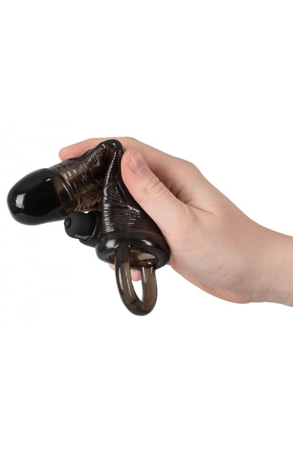 This amazing penis sleeve has a ball ring and vibro-bullet. The sleeve and the ring are flexible and the sleeve has bulging glans and striking veins. It also has 4 small, stimulating spikes and an opening, which has dots on, for the included vibro-bullet. The vibro-bullet has 10 different modes.
