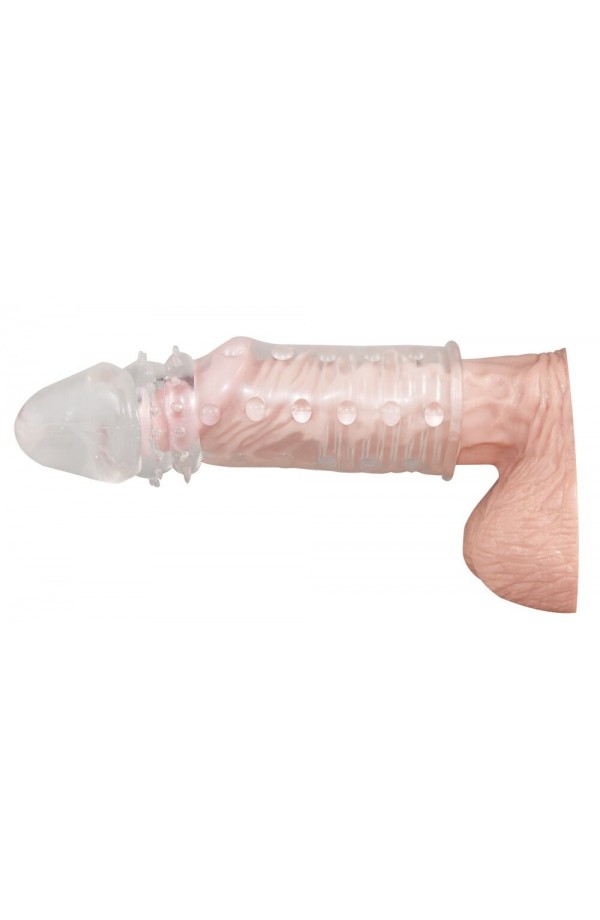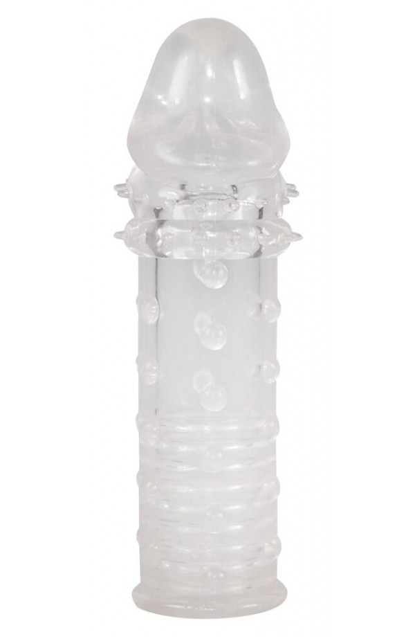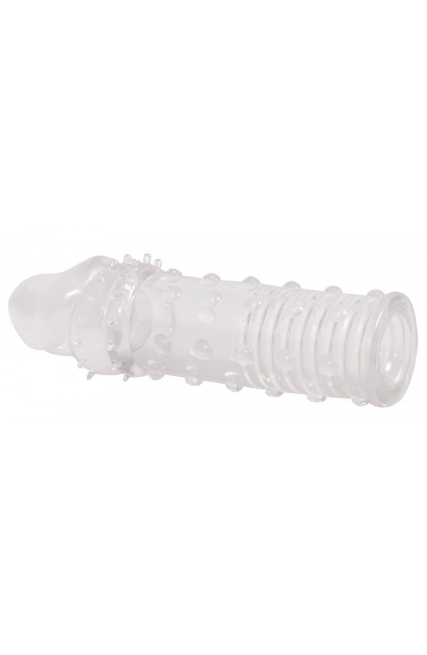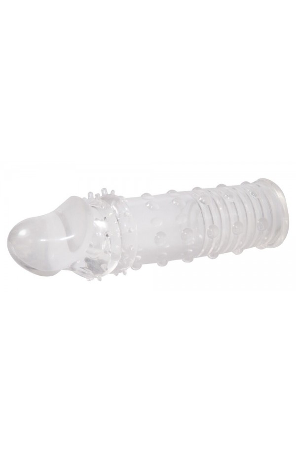 Transparent penis sleeve with 4 cm extension Dots outside, grooves inside Thickens the penis Supports the erection Velvety soft TPE material An upgrade for the penis! The transparent penis sleeve, Fun Extension from You2Toys, is covered in exciting dots. It thickens the penis with its material thickness and lengthens it by 4 cm, thanks to its solid glans. It's perfect for intense and fulfilling stimulation during sex! The Fun Extension penis sleeve is put on the penis and stays in place without slipping because of the exciting inner grooves. The tight fit also supports the erection for long-lasting fun. The penis sleeve is made out of velvety soft TPE material and is tight but flexible in both length and diameter. The Soft Touch material adapts quickly to body temperature and provides a realistic feeling for maximum fun. Total length 16 cm. Insertion depth 11.5 cm. Outer Ø 2.5–4 cm, Inner Ø 2.5 cm (slightly flexible). Material thickness 0.5 cm. TPE.
