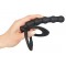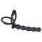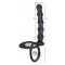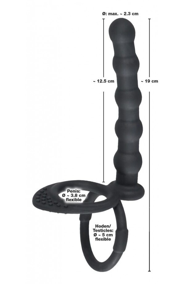 Black Velvets Cock & ball ring includes a cock ring with small dots, a ball ring and integrated anal beads. Along with its smooth surface it's sure to impress. The complete length is 19 cm. The anal beads have a length of 12.5 cm and a diameter of 2.3 cm. The cock ring has a diameter of 3.8 cm, the ball ring has a diameter of 5 cm. Silicone with a PU coating.